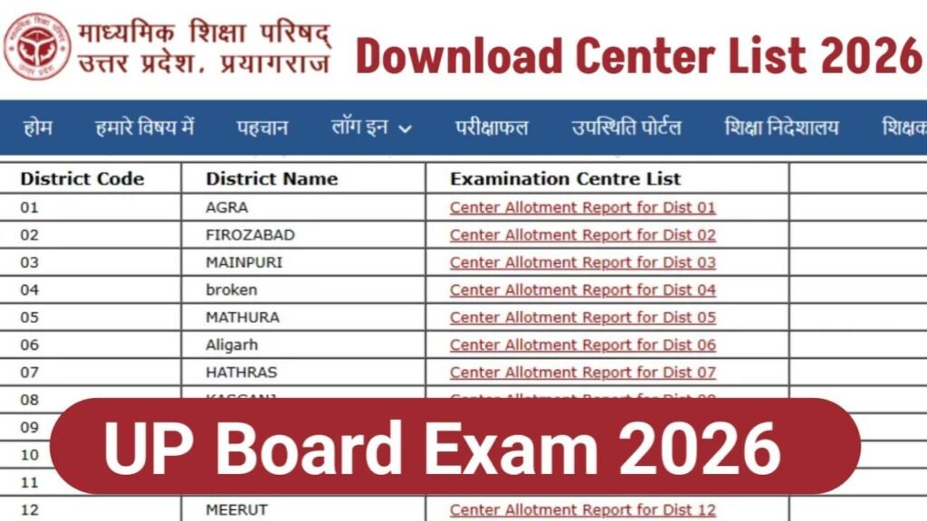 UP Board Exam 2026 Centre List PDF Released Today – Download Your Center List Now!