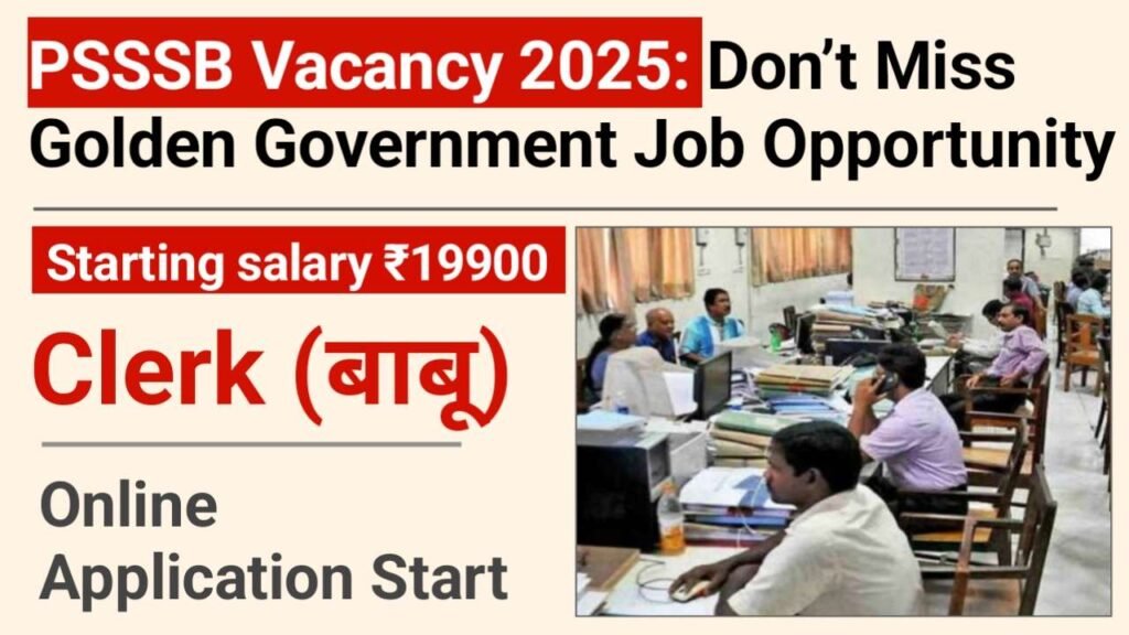 PSSSB Vacancy 2025: Apply for 70 Clerk Posts! Don’t Miss This Golden Government Job Opportunity , starting salary ₹19900