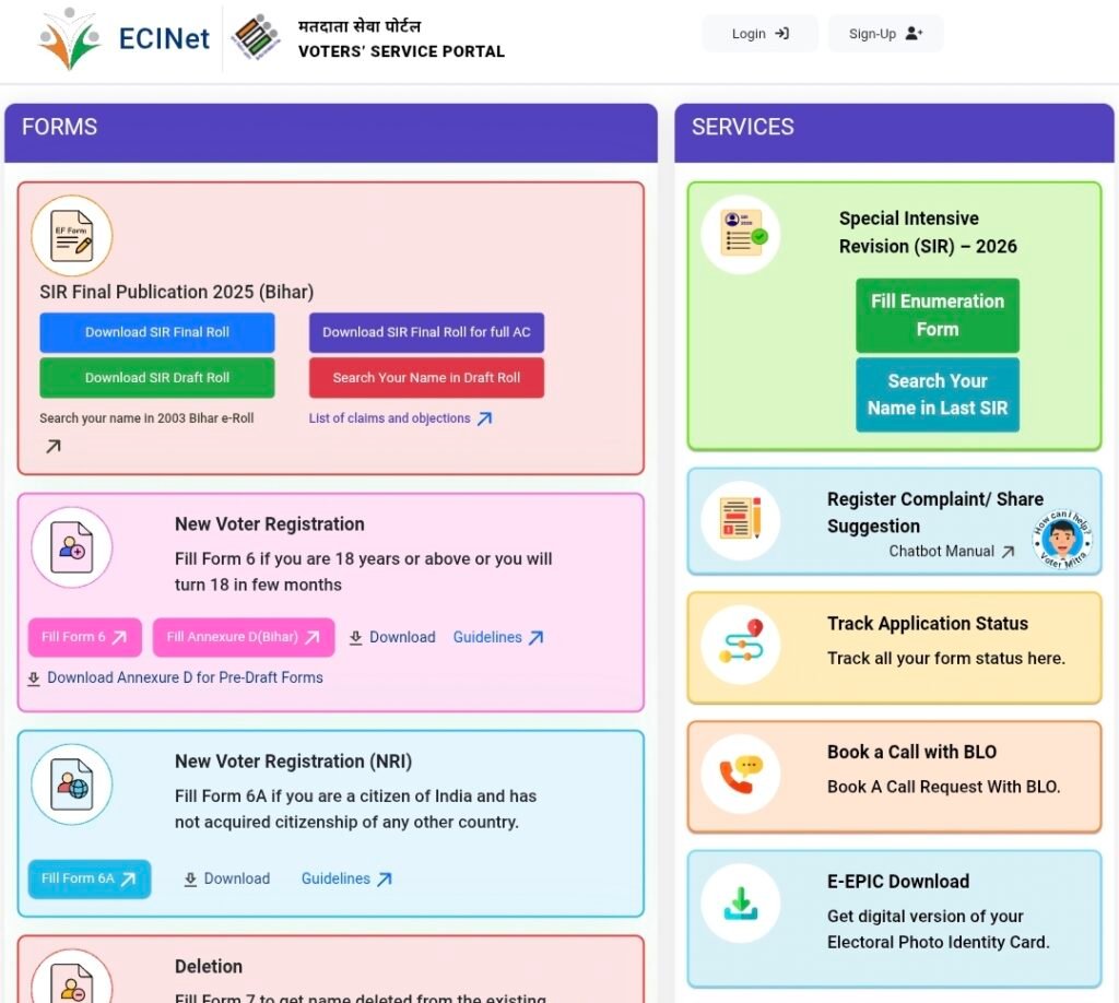 - First, visit the official Voter Service Portal of the Election Commission of India https://voters.eci.gov.in/ .
