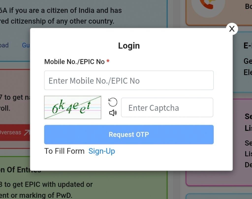 - If not registered, click Sign Up and create an account using your mobile number and EPIC number.