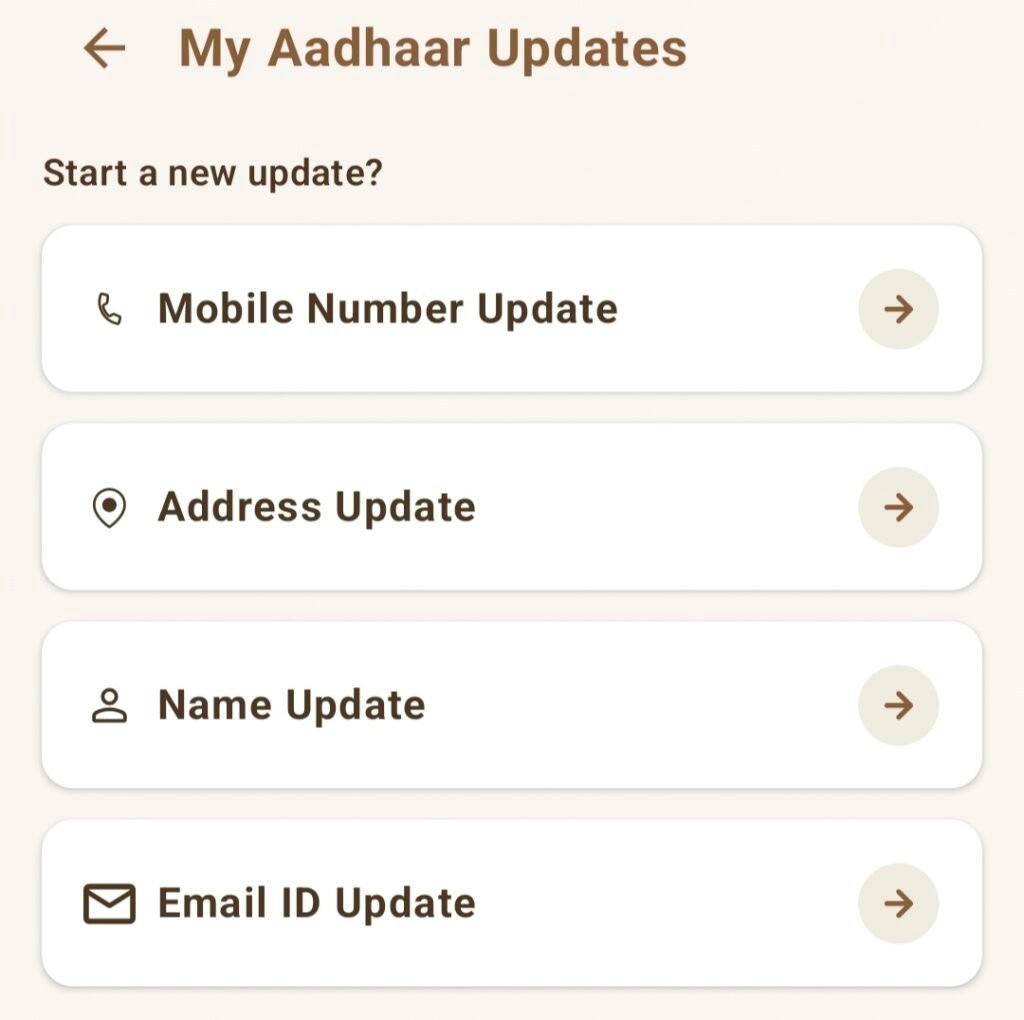 Soon, new features like AADHAAR CARD ADDRESS UPDATE, NAME UPDATE, and EMAIL ID UPDATE will also be added to the Aadhaar App, making it a complete self-service platform for Aadhaar-related updates.