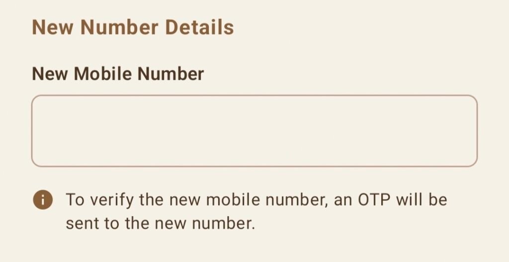 - Enter the OTP received on the new number and tap Verify.